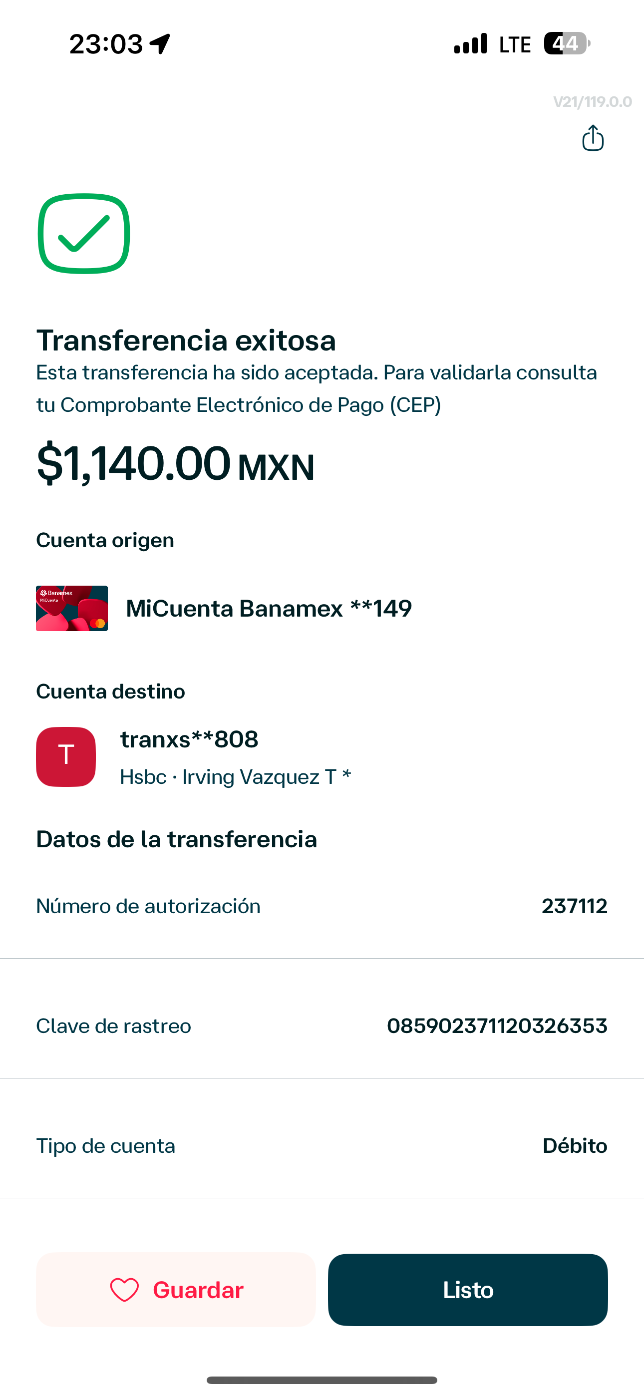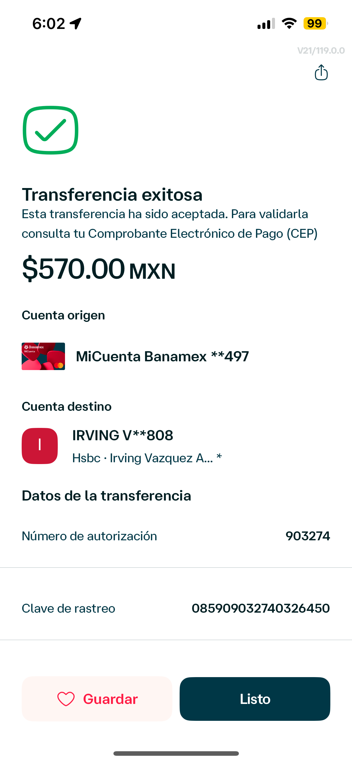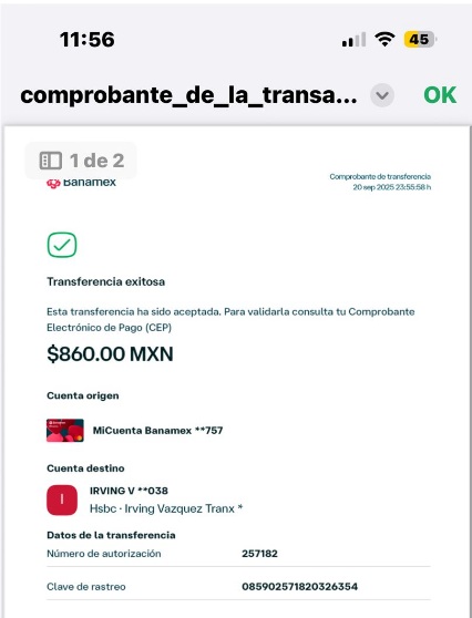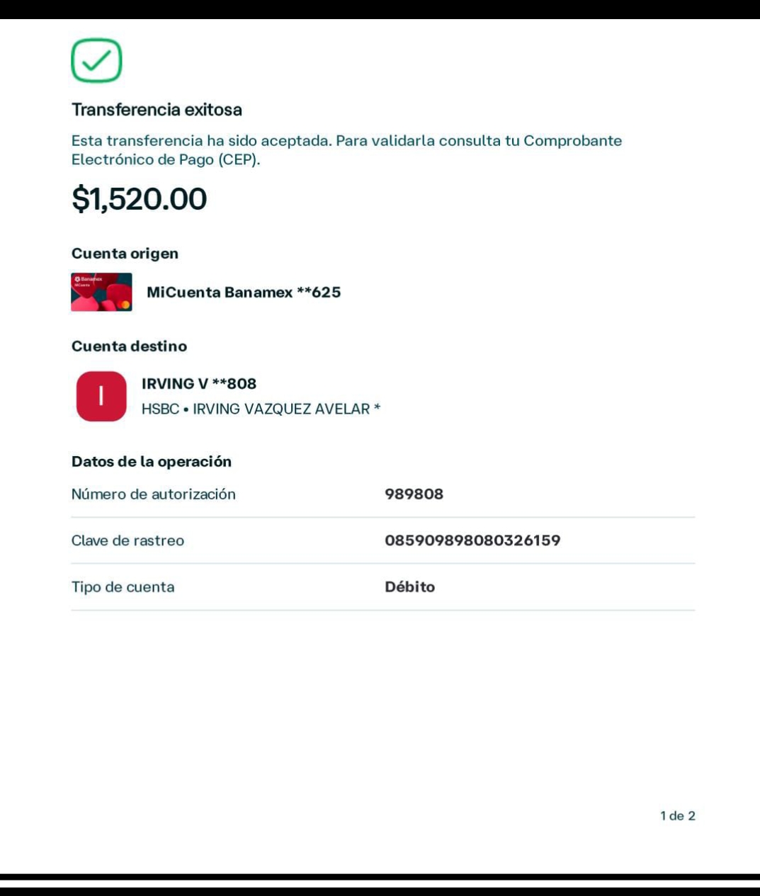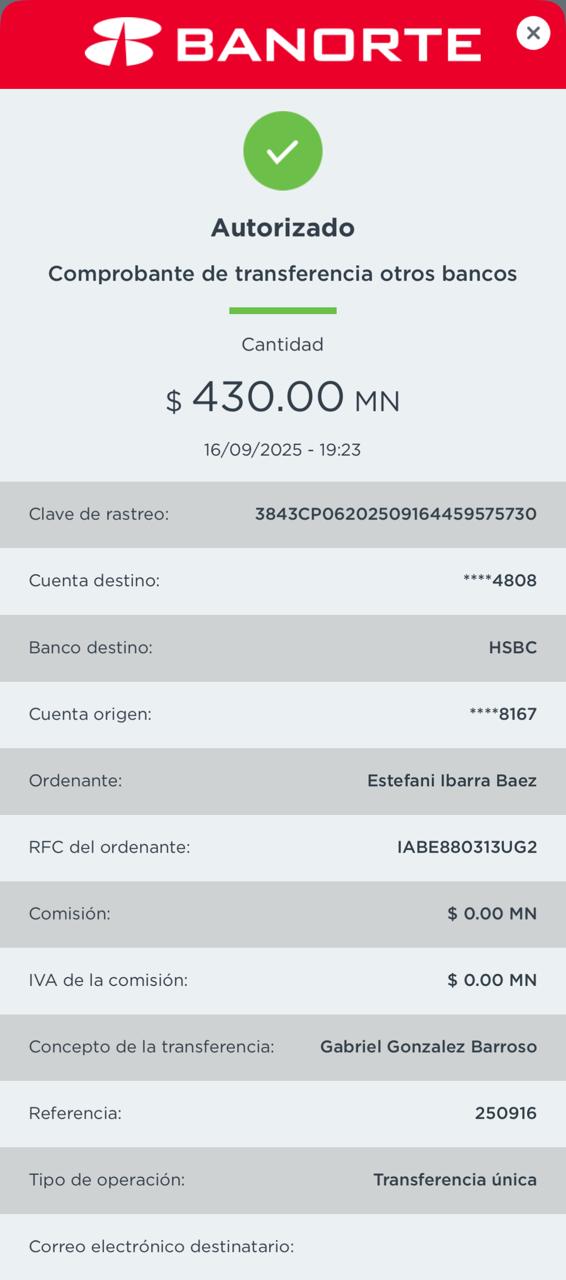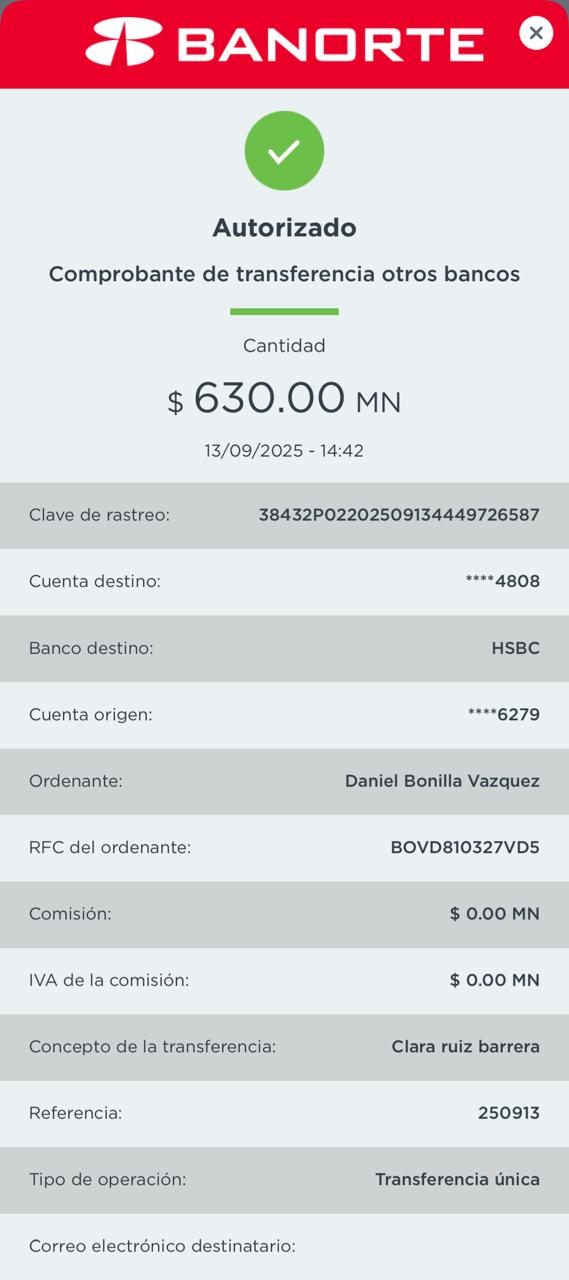 Número de autorización: 998783 Clave de rastreo: 085909987830330458