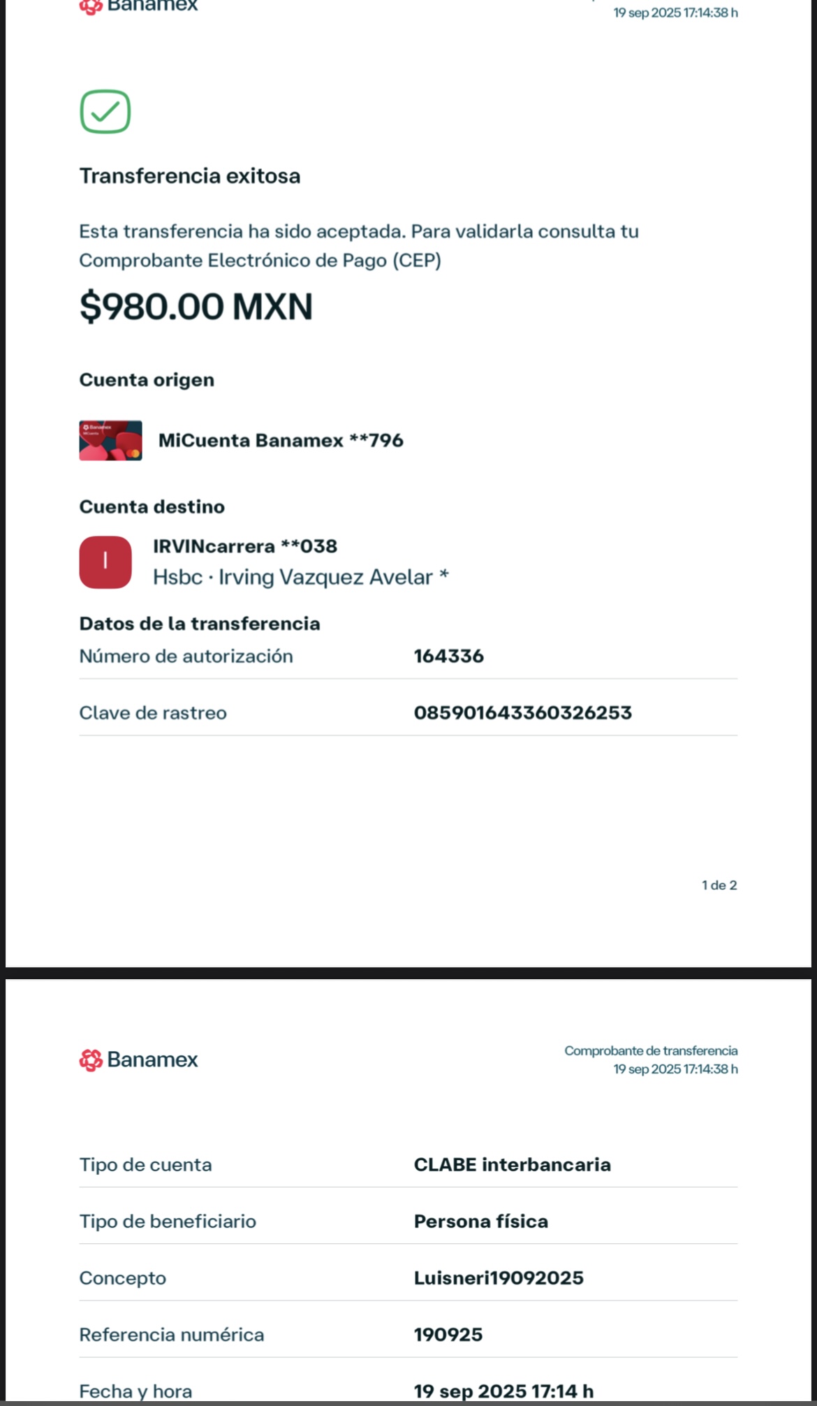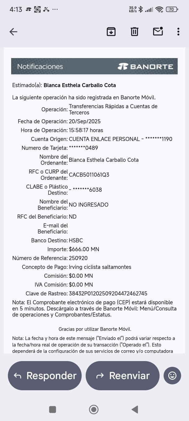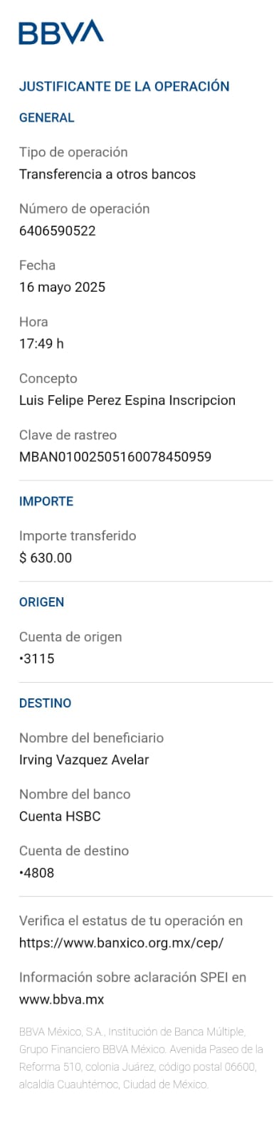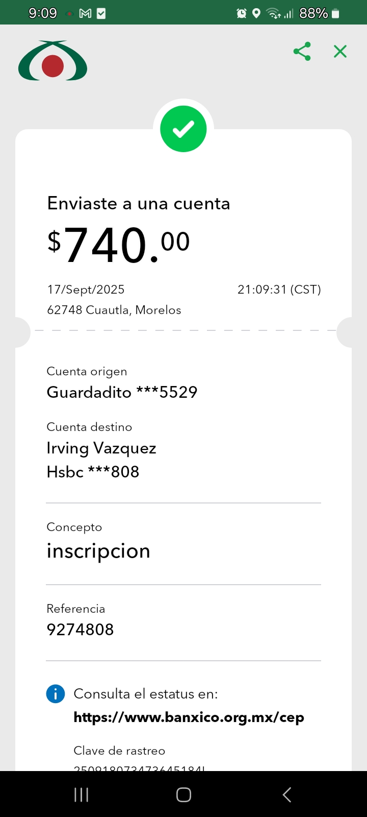 Número de autorización: 998783 Clave de rastreo: 085909987830330458