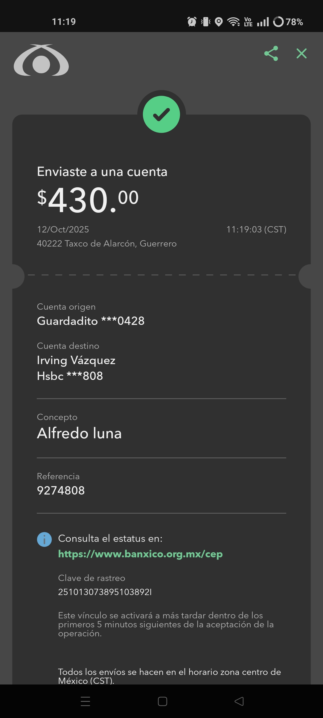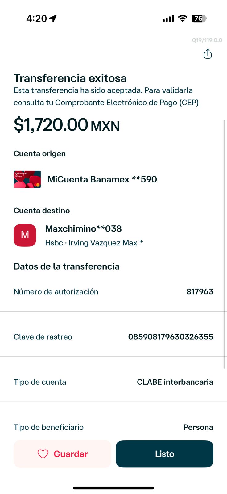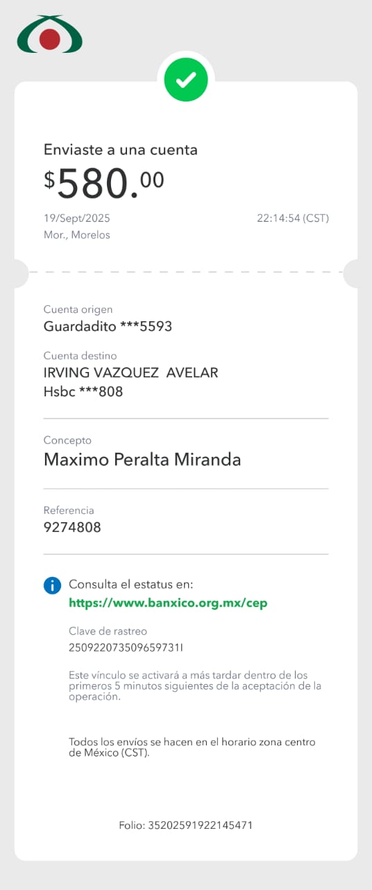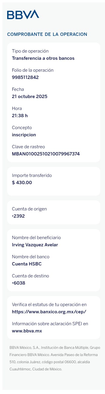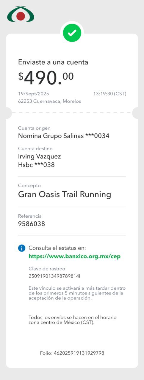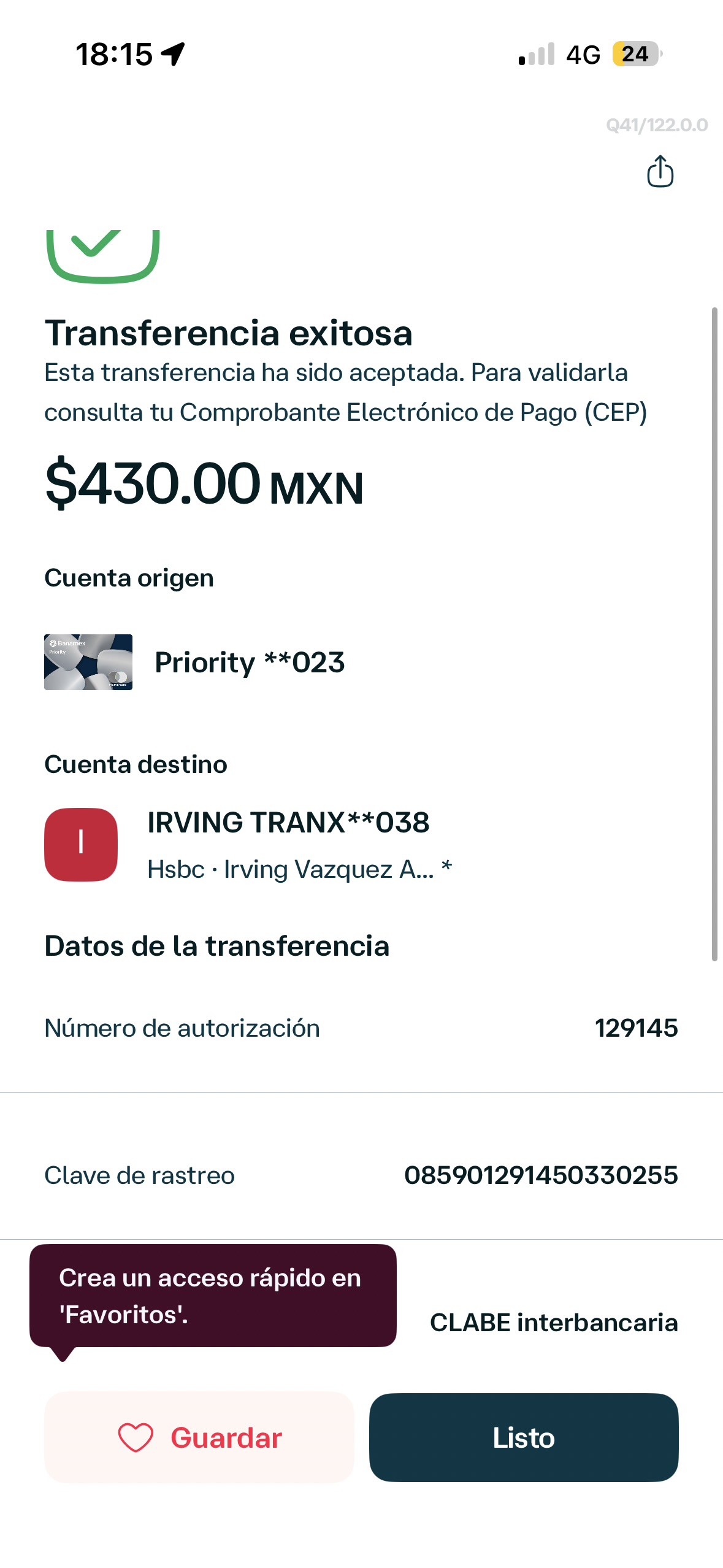 Número de autorización: 998783 Clave de rastreo: 085909987830330458