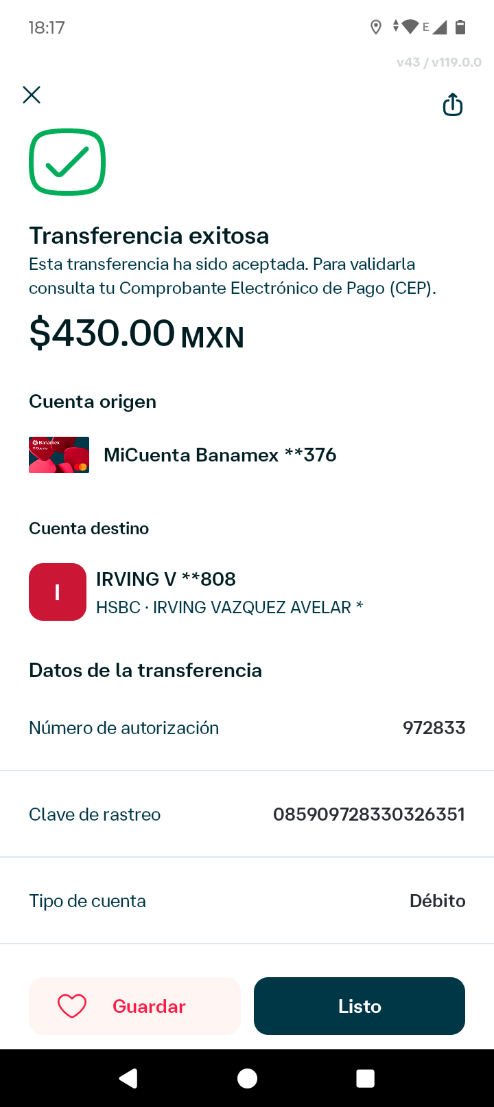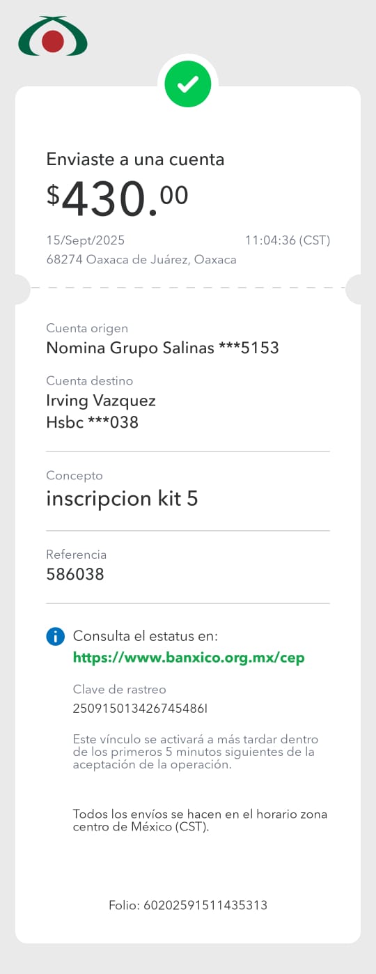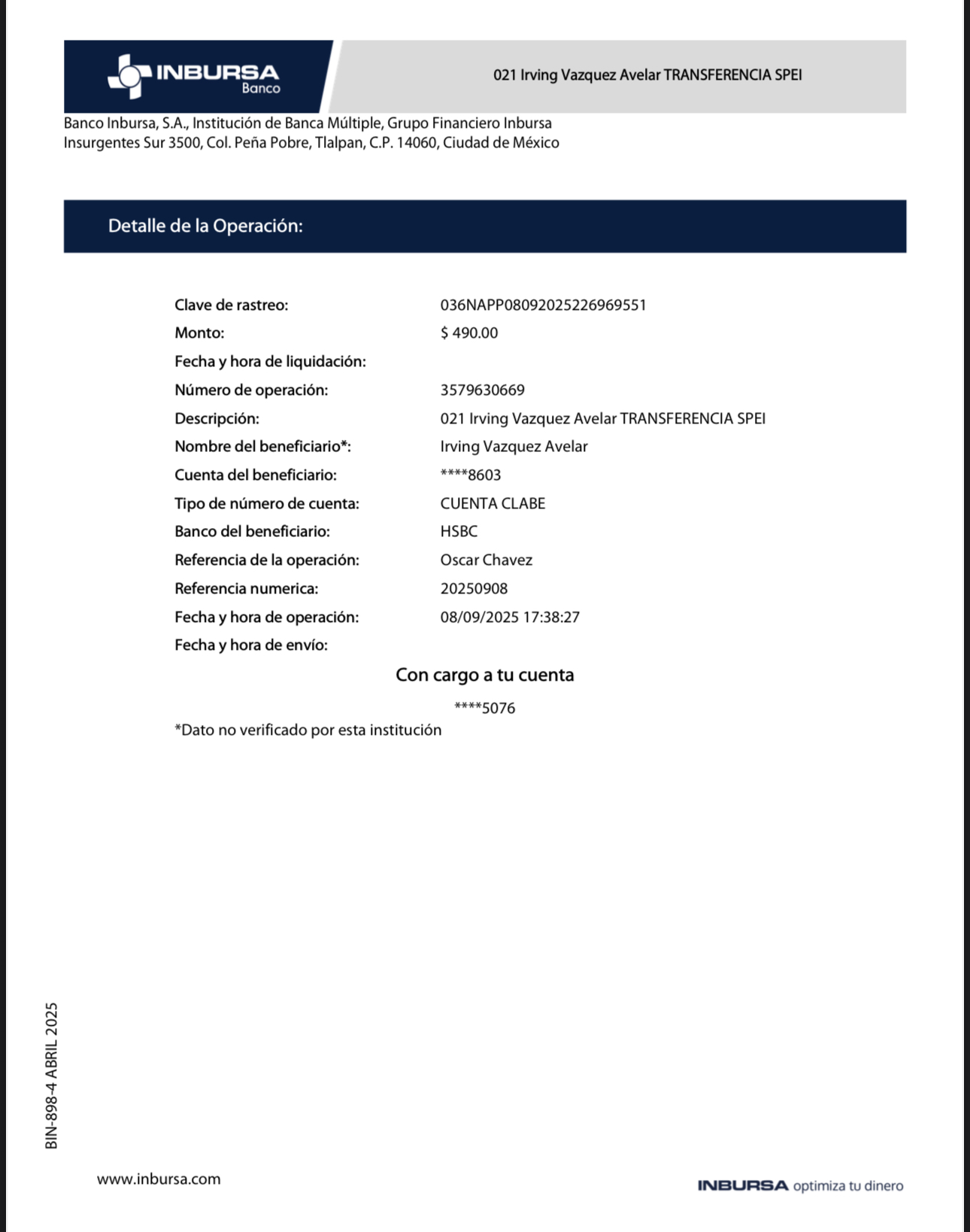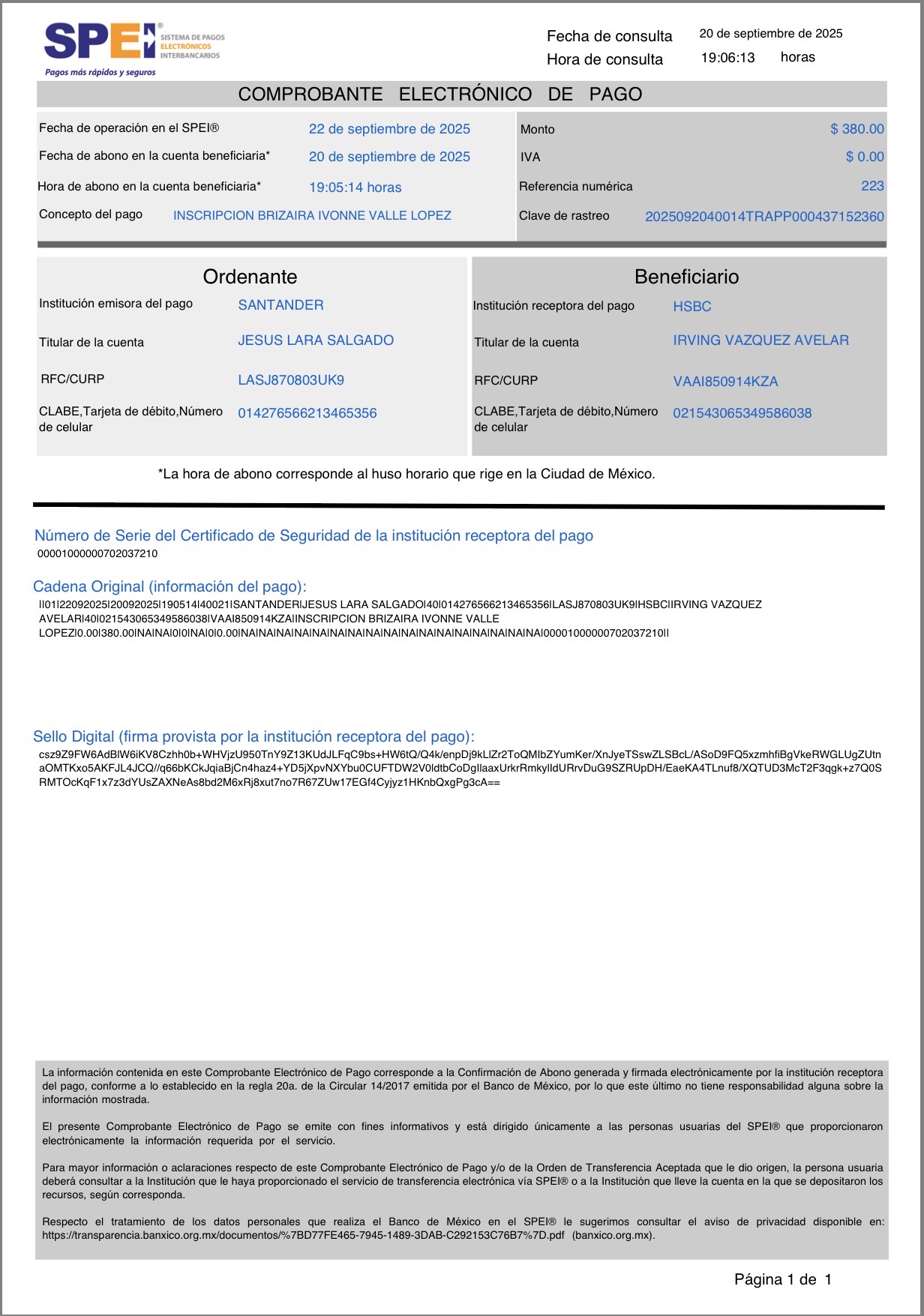 Número de autorización: 003787 Clave de rastreo: 085900037870330454